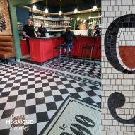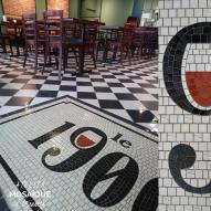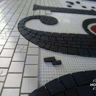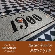 Réalisation d'un tapis mosaïque (140 x 80 cm) pour la brasserie "Le 1900" à Paray-le-Monial en collaboration avec "A Deux Architectes".