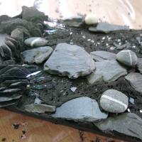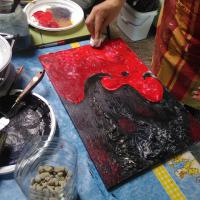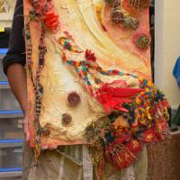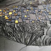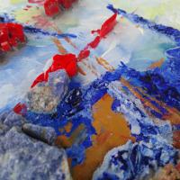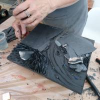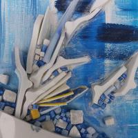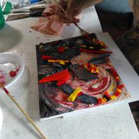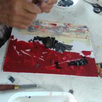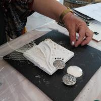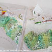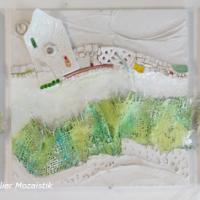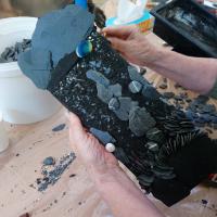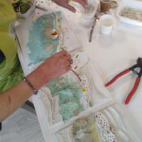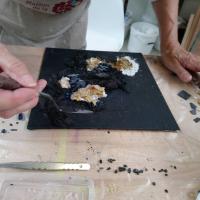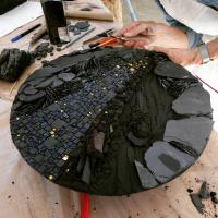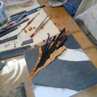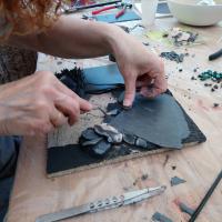 Avec les matériaux choisis, on travaille sur la composition qui sera réalisée en relief ou à plat.