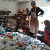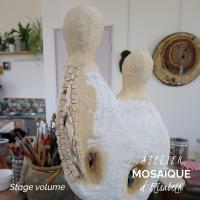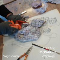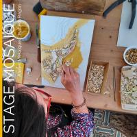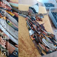 Différentes thématiques peuvent être abordées lors des stages : la taille à la marteline, la mosaïque en volume, la composition, l'ardoise, l'utilisation de matières avec la peinture et la mosaïque, la mosaïque décorative...