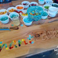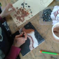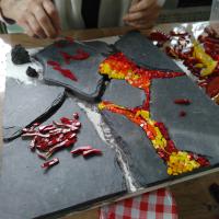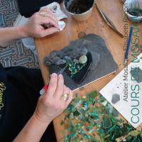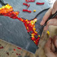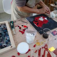 L'enseignement de la mosaïque part de la matière, avec la fragmentation qui nous permettra de réaliser des créations toujours uniques.