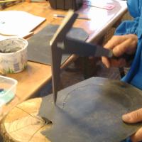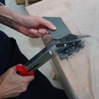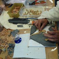La taille des tesselles se fait à la marteline sur tranchet ou à la pince.