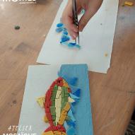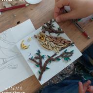 L’atelier commence par un jeu autour des outils et matériaux. Puis vient le moment de la création d’après un dessin réalisé par les participants ou choisi à l’atelier. Après une présentation sur l’origine de la mosaïque, petits et grands pourront créer leur propre œuvre, en choisissant leurs tesselles colorées que l’on taille et l’on assemble.